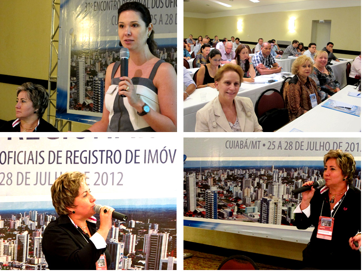 A registradora de imóveis em Poxoréu/MT Maria Aparecida Bianchin Pacheco, abriu o ciclo de debates na manhã desta sexta-feira (27), no 31º Encontro Regional dos Oficiais de Registro de Imóveis, em Cuiabá/MT. O tema principal foi “Novo Código Florestal e o registro de imóveis”. A representante da Secretária de Estado do Meio Ambiente (SEMA), subprocuradora-geral de defesa do Meio Ambiente, Ana Flávia Gonçalves de Oliveira Aquino, foi a debatedora do painel.